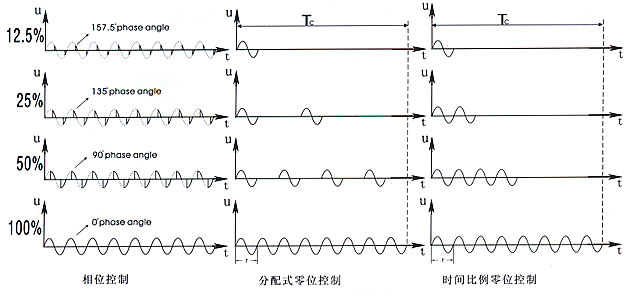 2.控制模式。綜觀國(guó)內(nèi)外可控硅電力控制器產(chǎn)品,控制模式無非就是兩種:相位控制和零位控制(分配式零位控制、時(shí)間比例零控制)。三者之間的比較請(qǐng)看以下圖表。